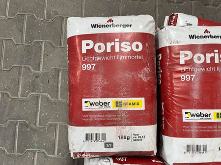 De Poriso 997 Lichtgewicht Lijmmortel is een hoogwaardige lijmmortel die speciaal is ontwikkeld voor het verlijmen van lichtbeton- en kalkzandsteenblokken. Dankzij de lichte samenstelling is de mortel eenvoudig te verwerken, zuinig in gebruik en zorgt hij voor een sterke, duurzame verbinding tussen de blokken. Deze lichtgewicht lijmmortel hecht uitstekend, is gemakkelijk aan te maken met water en laat zich soepel verwerken, wat het werktempo op de bouwplaats aanzienlijk verhoogt.